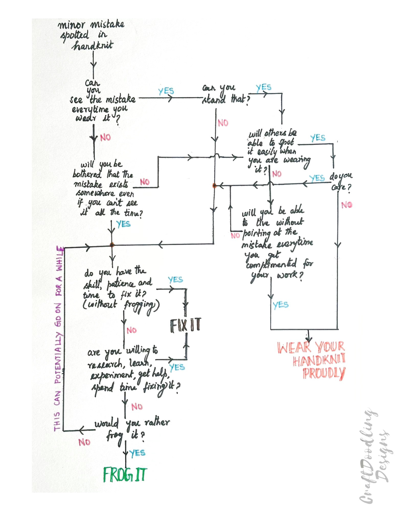 What do you think? 😅 What is your approach to dealing with knitting mistakes? Would you add anything to this flowchart? Leave a comment to let me know! 💙
